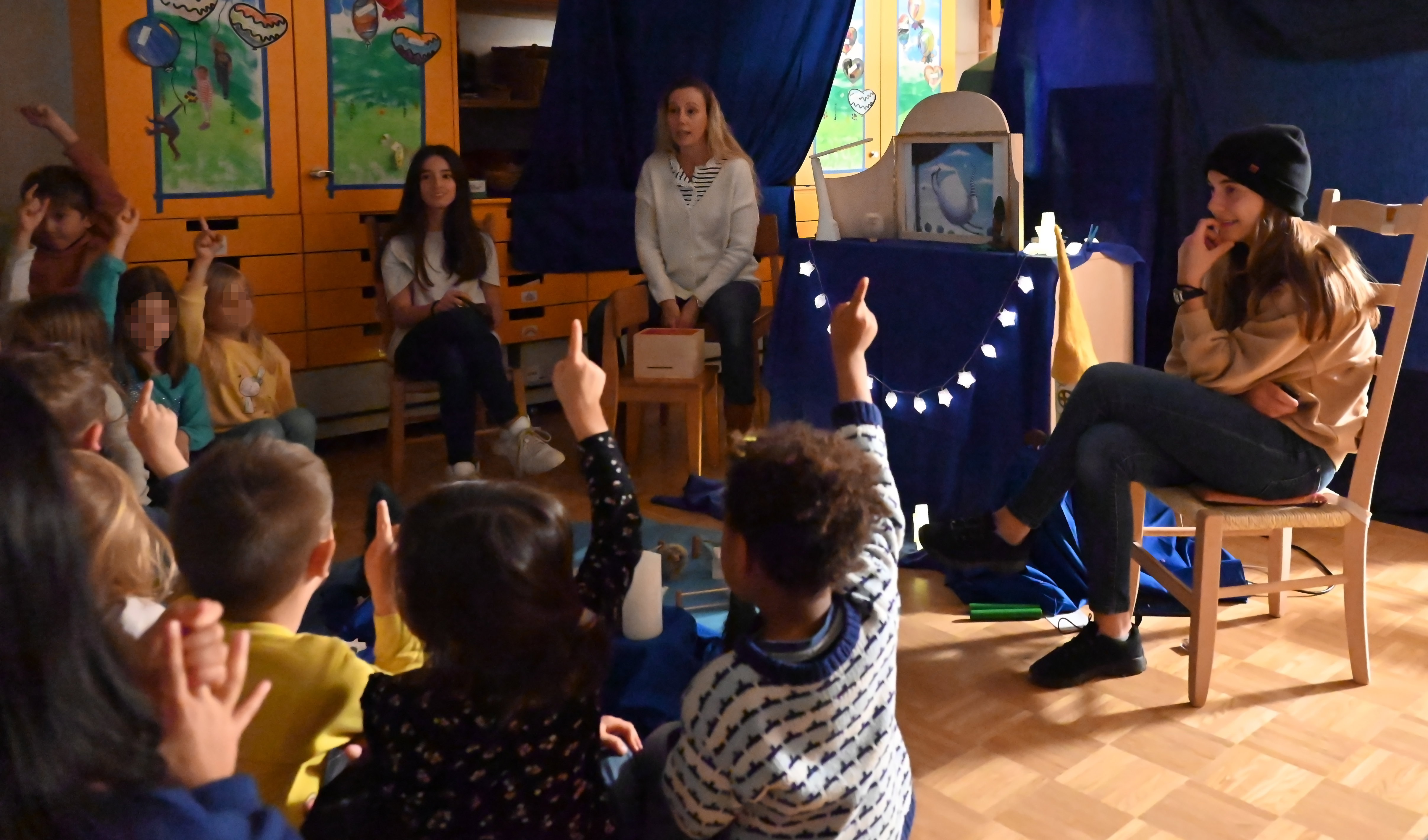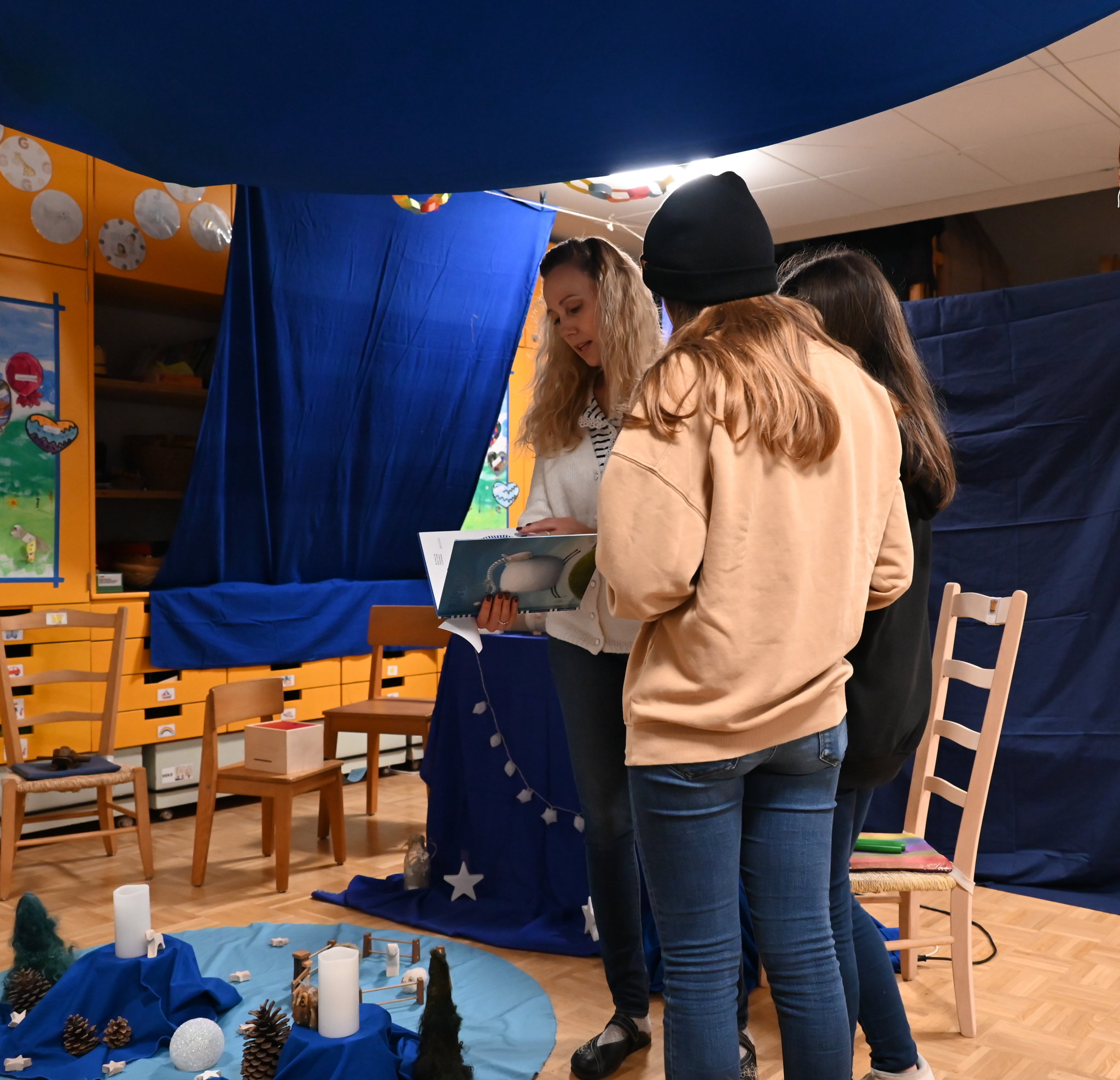 At this year's storytelling night, the kindergarten children of the Klosterguet school unit listened eagerly to how Russell, the sleepless sheep, managed to get a good night's sleep. In a relaxed atmosphere, I told a funny bedtime story. All four kindergarten classes followed Russell's nighttime journey with excitement.